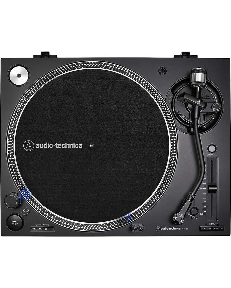 L’ Audio-Technica AT-LP140XP-BK è un giradischi professionale per DJ a trazione diretta con un motore potente e un piatto in alluminio pressofuso a bassa risonanza e antivibrazioni. Il braccio a S consente una regolazione precisa dell’altezza, della pressione di tracciamento e del controllo anti-skating . Altre caratteristiche professionali includono un pulsante di avvio/arresto, la funzione di rotazione avanti e indietro , un blocco del pitch controllato al quarzo, un intervallo di pitch di +/-8%, +/-16% e +/-24% , un giradischi stroboscopico con indicatore di velocità e una luce dell’ago retrattile. L’Audio-Technica AT-LP140XP è inoltre dotato del portatestina AT-HS6 e della testina DJ AT-XP3 .