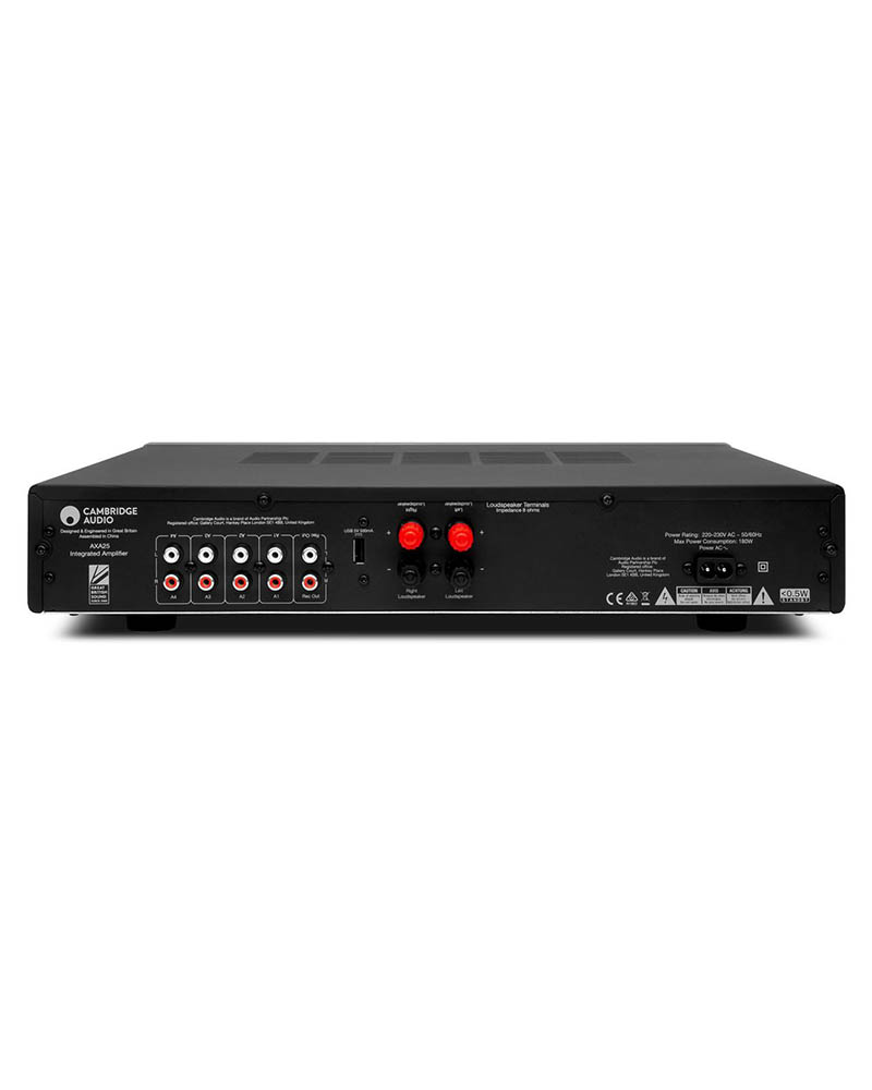 Non solo l’AXA25 è un ottimo rapporto qualità-prezzo con 25 watt di potenza per canale, ma dispone anche di un ingresso AUX da 3,5 mm sulla parte anteriore e quattro ingressi analogici sul retro in modo da poter collegare tutte le sorgenti di uscita.
